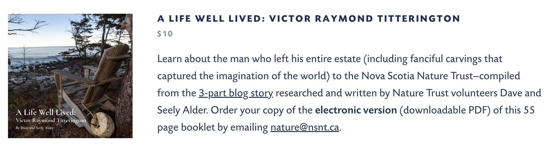 This project involved the design and layout of a commemorative booklet created for the Nova Scotia Nature Trust, telling the story of Victor Raymond Titterington — a lifelong creator, builder, and nature lover whose generous bequest continues to protect natural spaces across Nova Scotia.